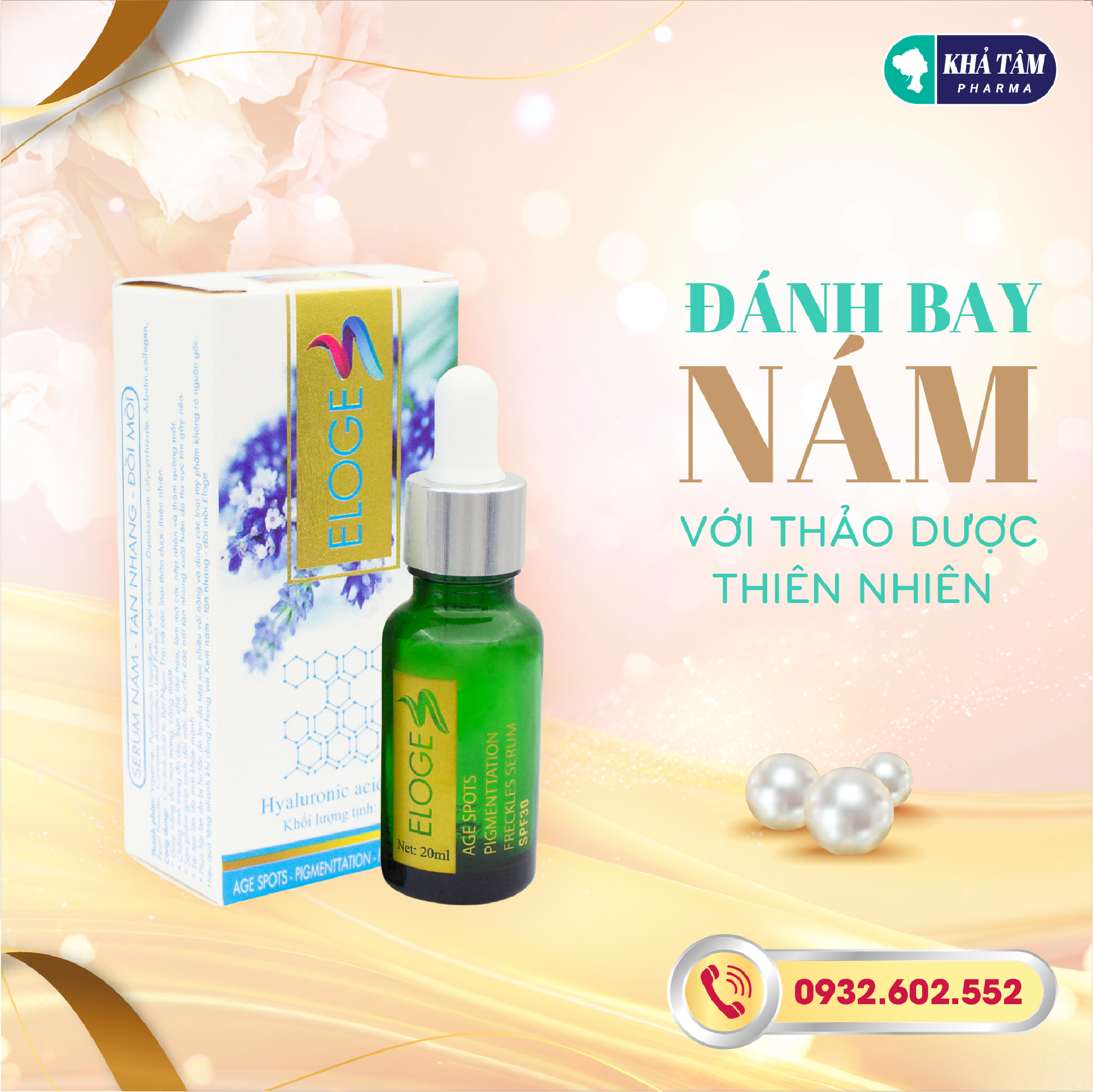 SERUM NÁM SẠM TÀN NHANG - ĐỒI MỒI là dòng tinh chất dưỡng da đến từ thương hiệu mỹ phẩm KHẢ TÂM , với các thành phần Glutathione, Thảo dược thiên nhiên, vitamin E có công dụng chuyên biệt làm mờ, giúp hạn chế sản sinh các sắc tố melanin, ngăn hình thành sạm, nám, đốm nâu hiệu quả. Đồng thời sản phẩm làm sáng, đều màu da và cải thiện các dấu hiệu lão hoá da hiệu quả.