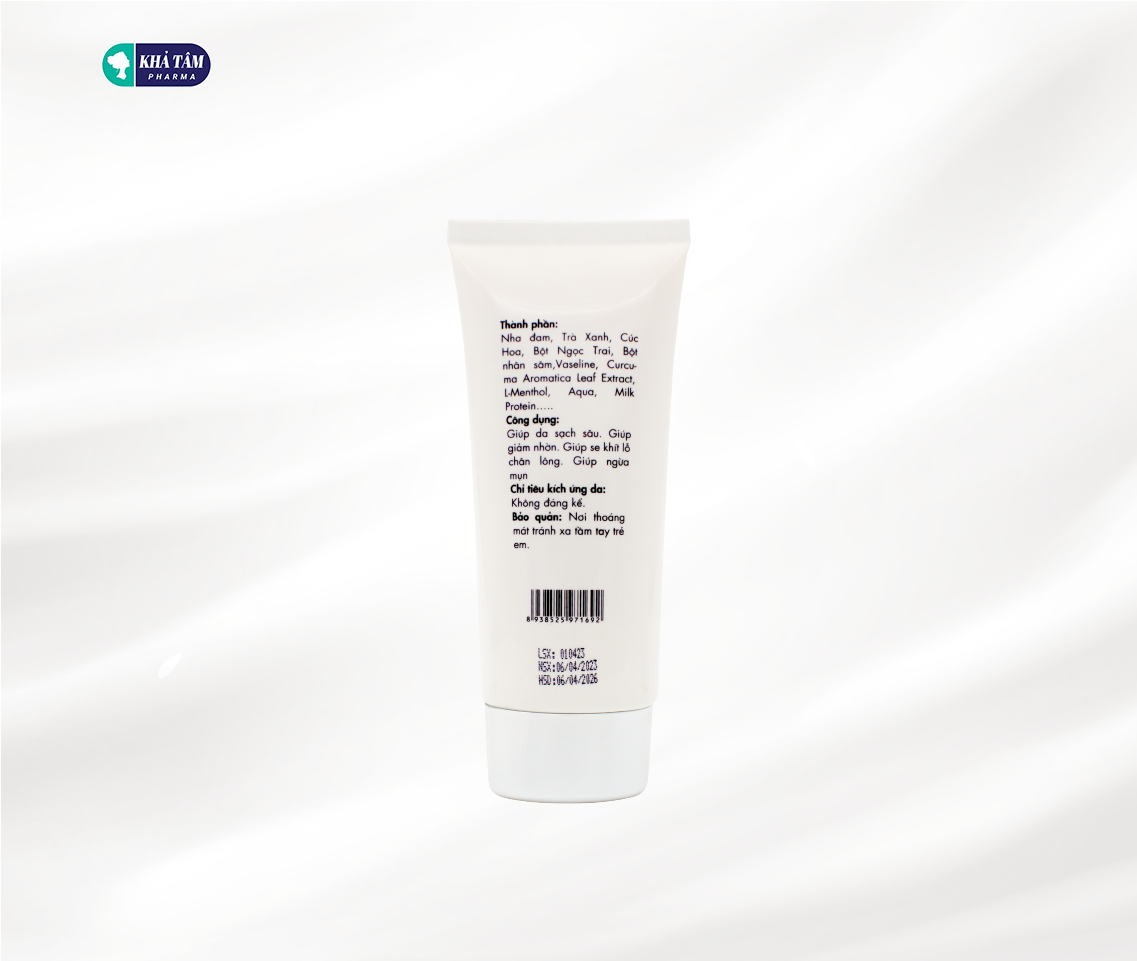 Nha đam, Trà Xanh, Cúc Hoa, Bột Ngọc Trai, Bột nhân sâm, Vaseline, Curcuma Aromatica Leaf Extract, L-Menthol, Aqua, Milk Protein...
