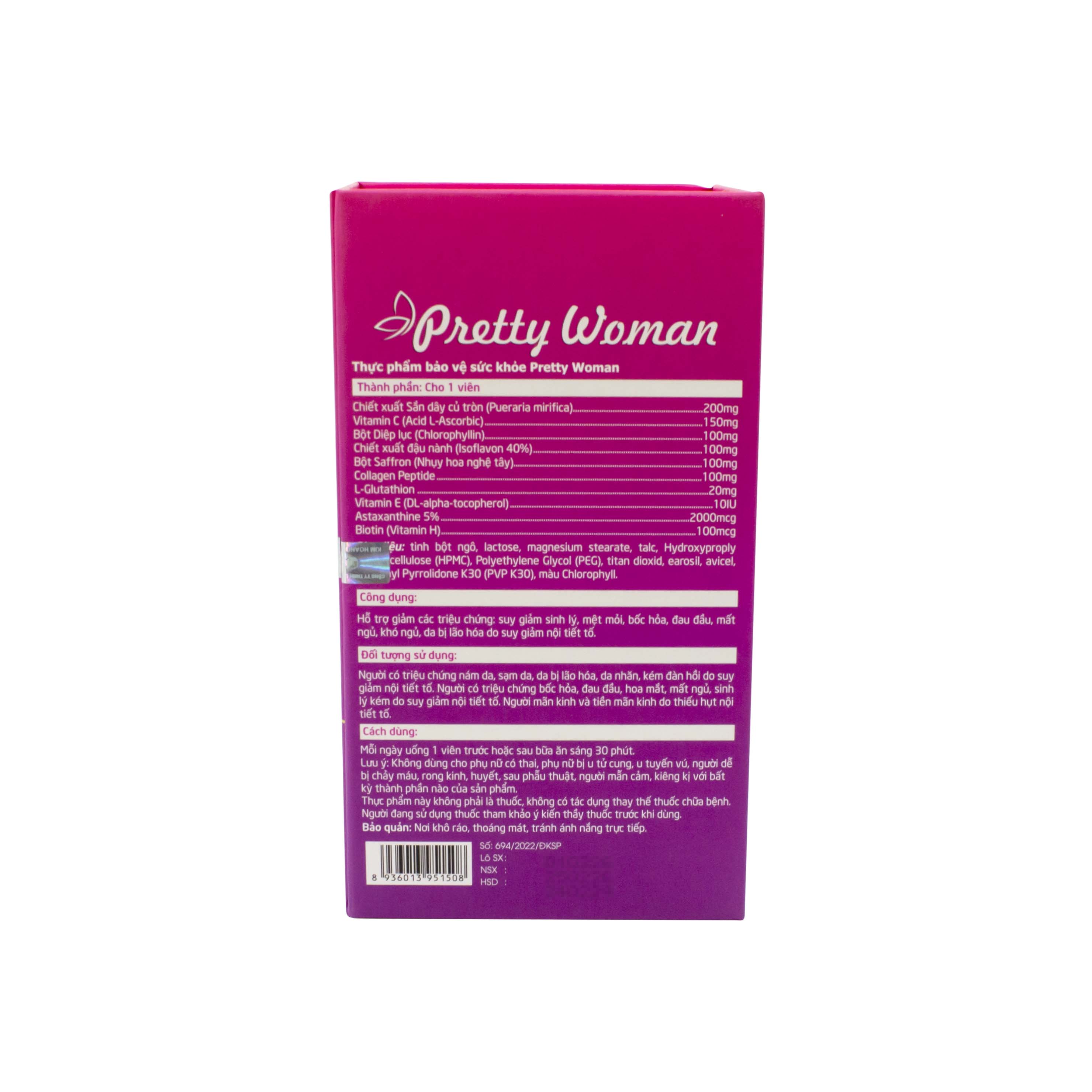 Viên uống đẹp da, chống lão hóa, bổ sung nội tiết tố nữ tăng sinh lý nữ tiền mãn kinh Pretty Woman hộp 30 viên